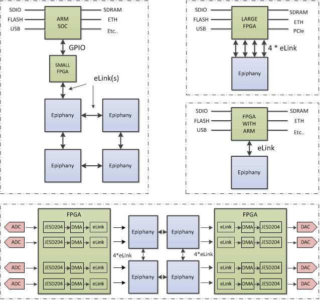 The E16G401 product can be used in a number of different system configurations, some of which are shown in this section.