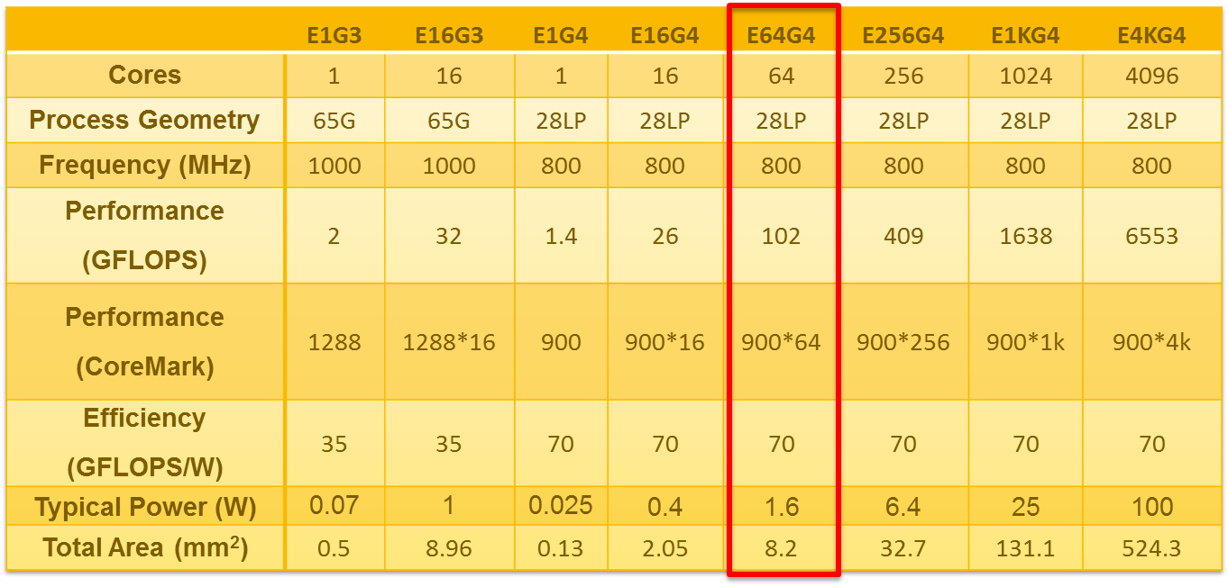 TRUTH: The overhead of program storage, instruction fetching, and instruction decoding is less than 30% in well designed MIMD architectures. This SIMD advantage is roughly equivalent to performance variations originating from process node variations, design team performance, and micro-architectural design choices. Table 1 below shows that the The Epiphany IV actually outperforms the leading edge SIMD based GPGPUs at the same technology node in terms of energy and silicon efficiency.