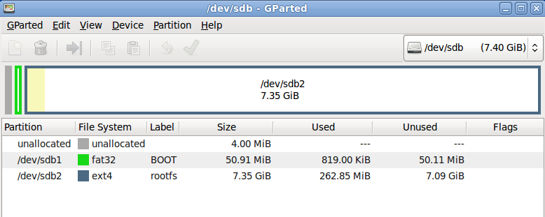 - The second partition will occupy the rest of the available space. It will store the system’s root file sytem, and should be formatted with ext4 file system. This partition should be labelled as rootfs
